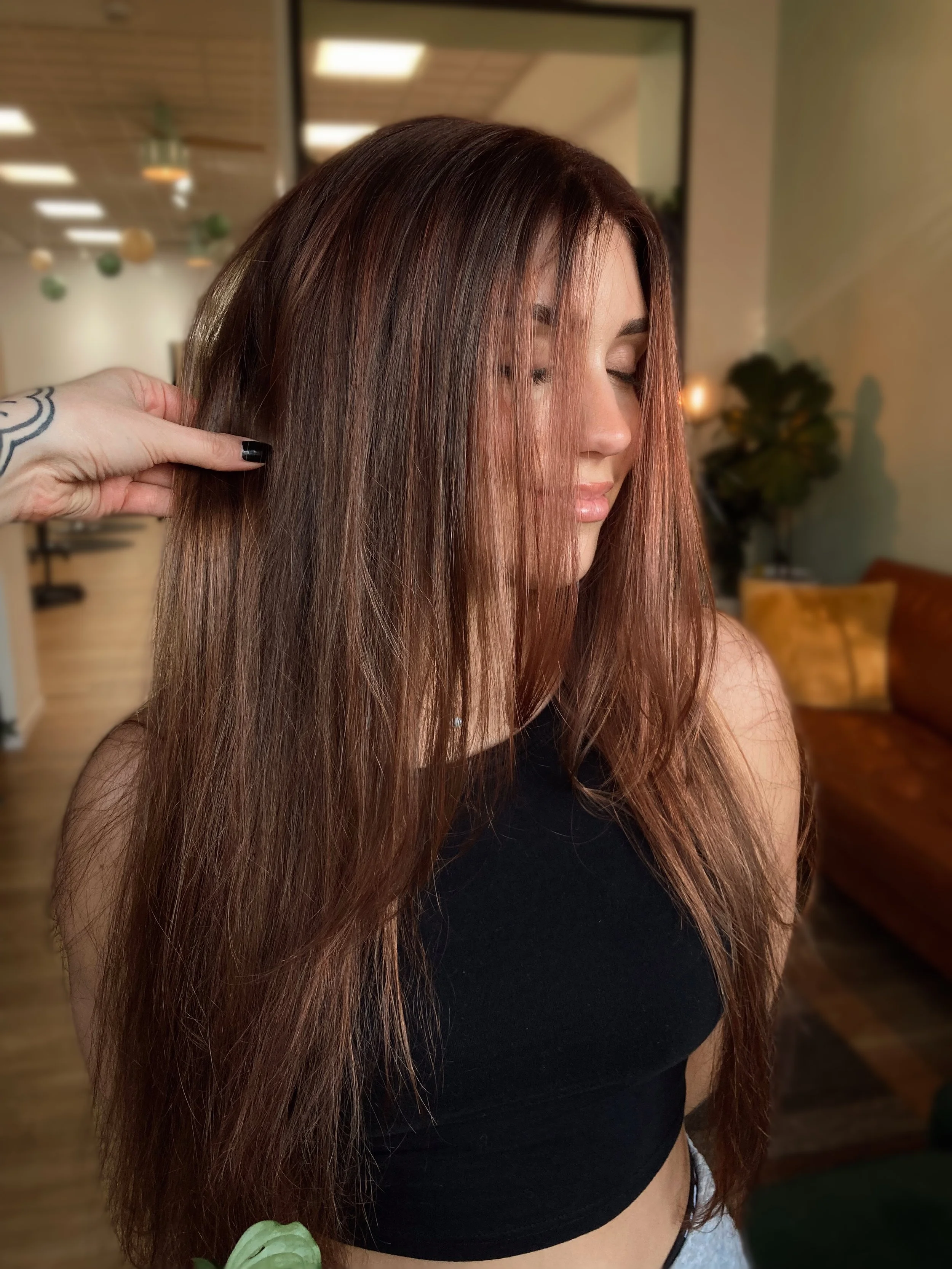 Now you can find me in my own suite in Fairlawn, Ohio! I specialize in dimensional brunettes but I also love doing lived- in blondes, lived- in haircutting, and custom color.
